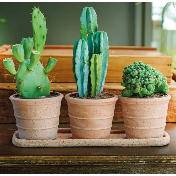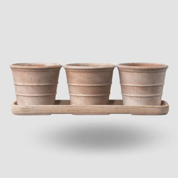 Set glinenih loncev Siena vključuje tri elegantne cvetlične lonce z ujemajočim se pladnjem, izdelane iz kakovostne galestro gline, ki slovi po svoji trpežnosti in naravnem videzu. Set je idealen za majhne rastline, kaktuse ali sukulente, saj omogoča urejeno in estetsko zasaditev na enem mestu.