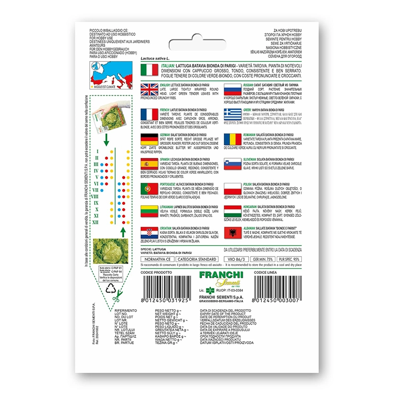 Solata LOLLO BIONDA je zgodnja sorta srednje velikosti. Listi so pokončni in hrustljavi z nagubanimi robovi. Po obiranju ponovno zraste.