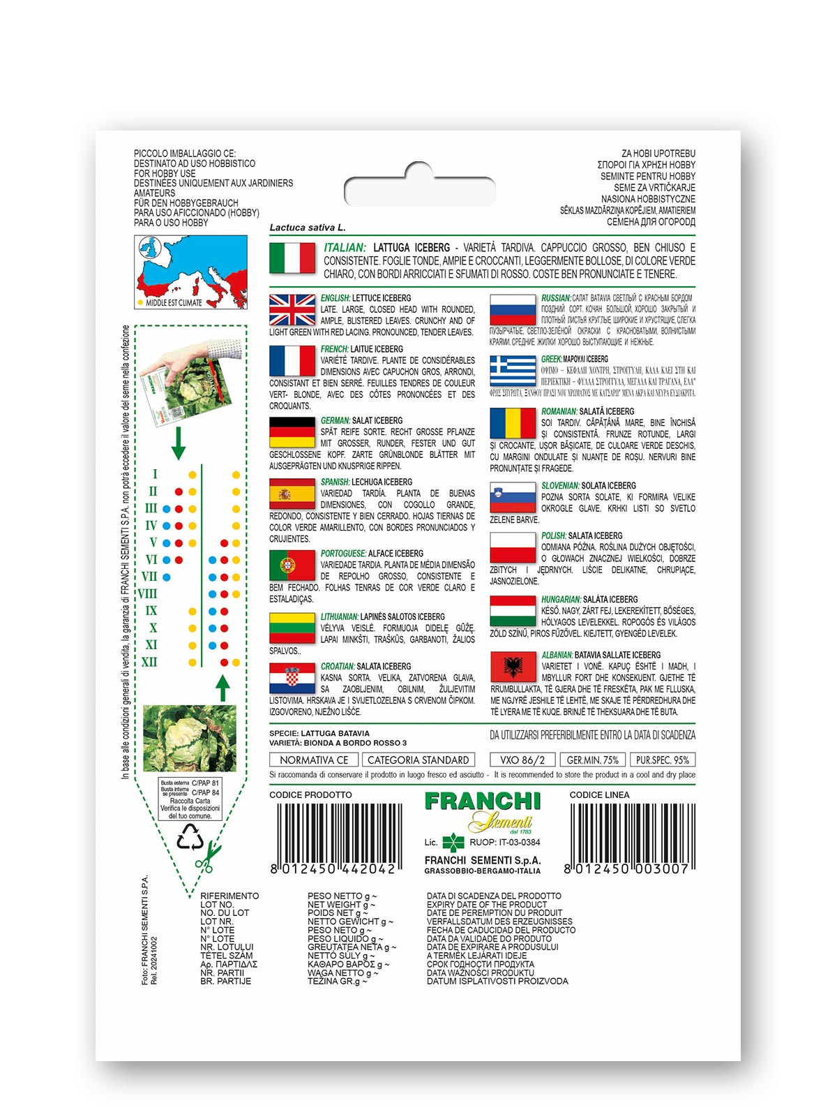 Solata ledenka REGINA GHIACCI je pozna sorta z veliko, okroglo glavo. Okrogli listi imajo izrazite nazobčane robove. Peclji so hrustljavi in odporni na cvetenje.