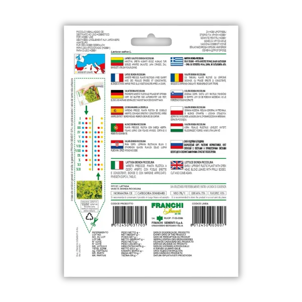 Solata rezivka Bionda Ricciolina je zgodnja sorta, ki ima svetle, nazobčane liste, ki rastejo pokončno. Ko jo porežemo, ponovno olista. Pakiranje: 8g.