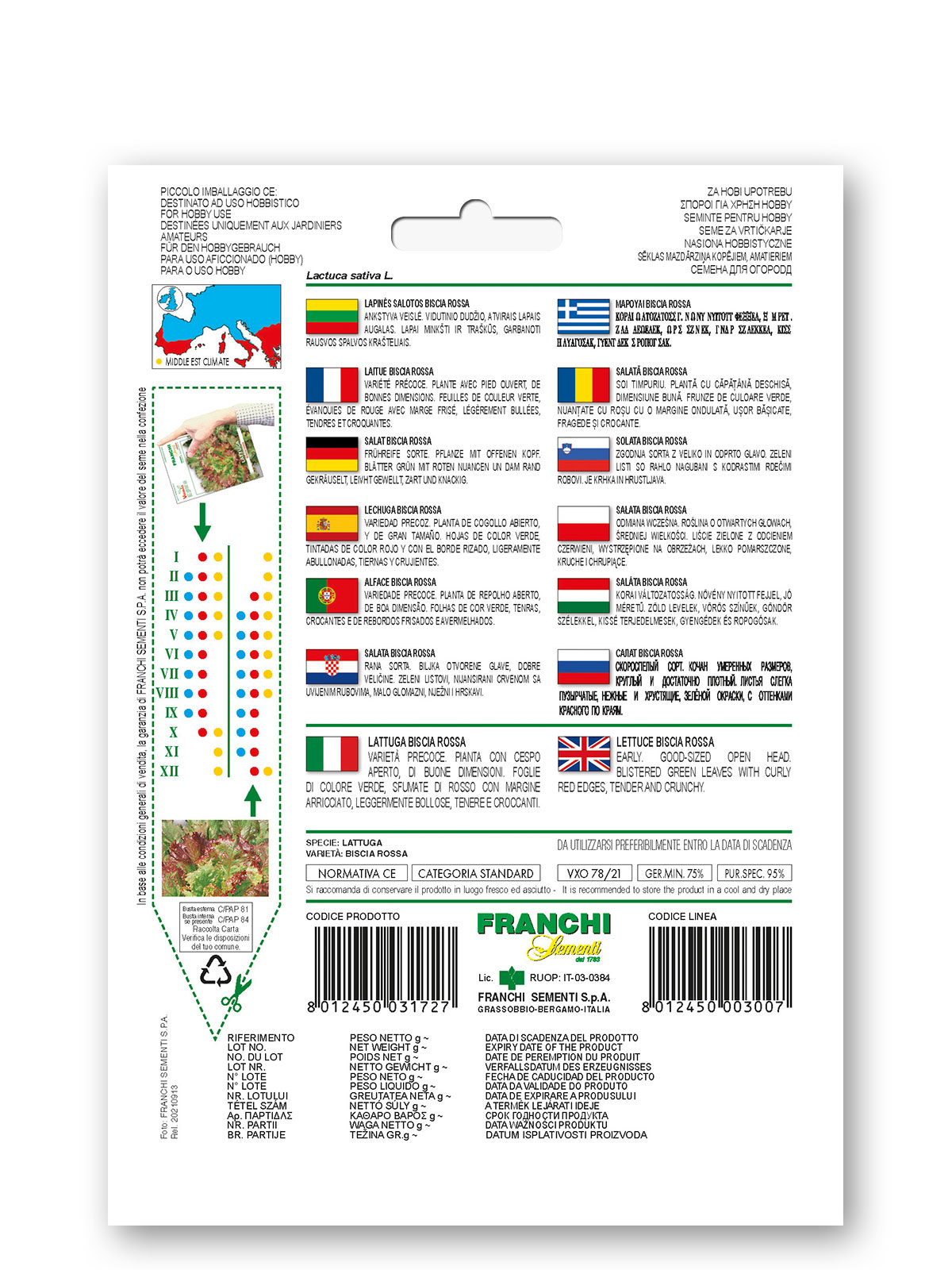 Solata ROSSA RICCIOLINA je zgodnja sorta z dobro odpornostjo. Pokončni, čvrsti listi rdeče barve. Počasi preide v cvet.