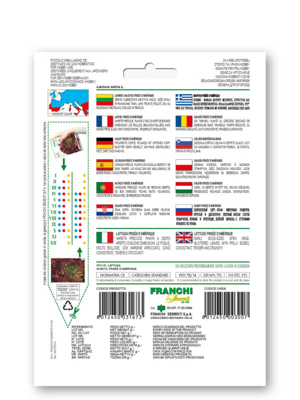 Solata FRISEE D’AMERIQUE - AMERICANA BRUNA je zgodnja sorta z odprtim glavičem večjih dimenzij. Mehurjasti listi z nazobčanimi robovi so čvrsti, nežni in hrustljavi.