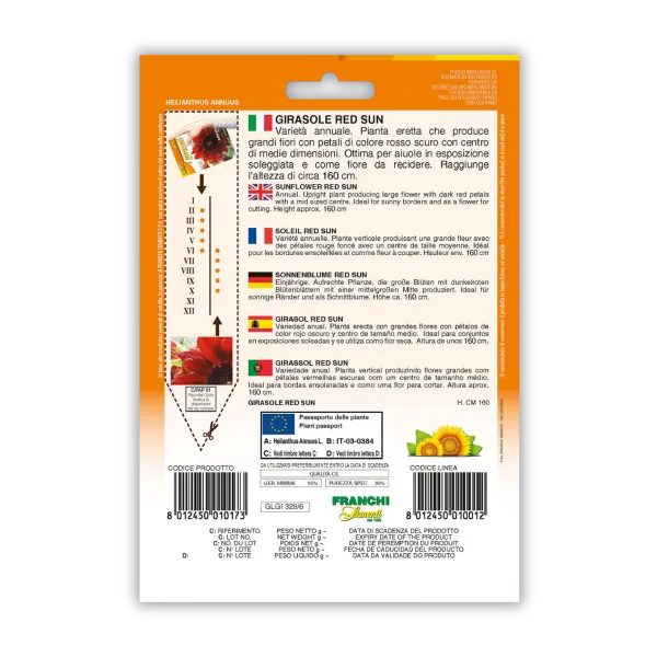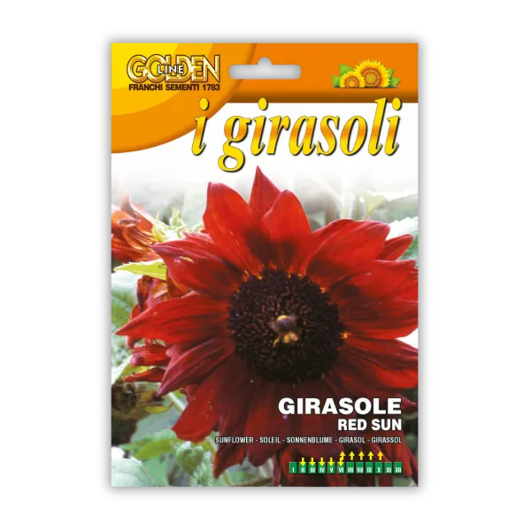 Visoka rdeča sončnica z velikimi cvetovi in teim sredinskim delom. Odlična za cvetlične gredice in rezano cvetje.