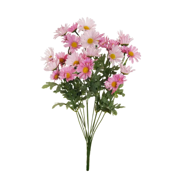 Umetni šopek svetlo rožnatih marjetic, visok 40 cm, doda nežnost in barvitost vsakemu prostoru. Izdelan iz kakovostne plastike, ne potrebuje vzdrževanja in ohranja svež izgled.