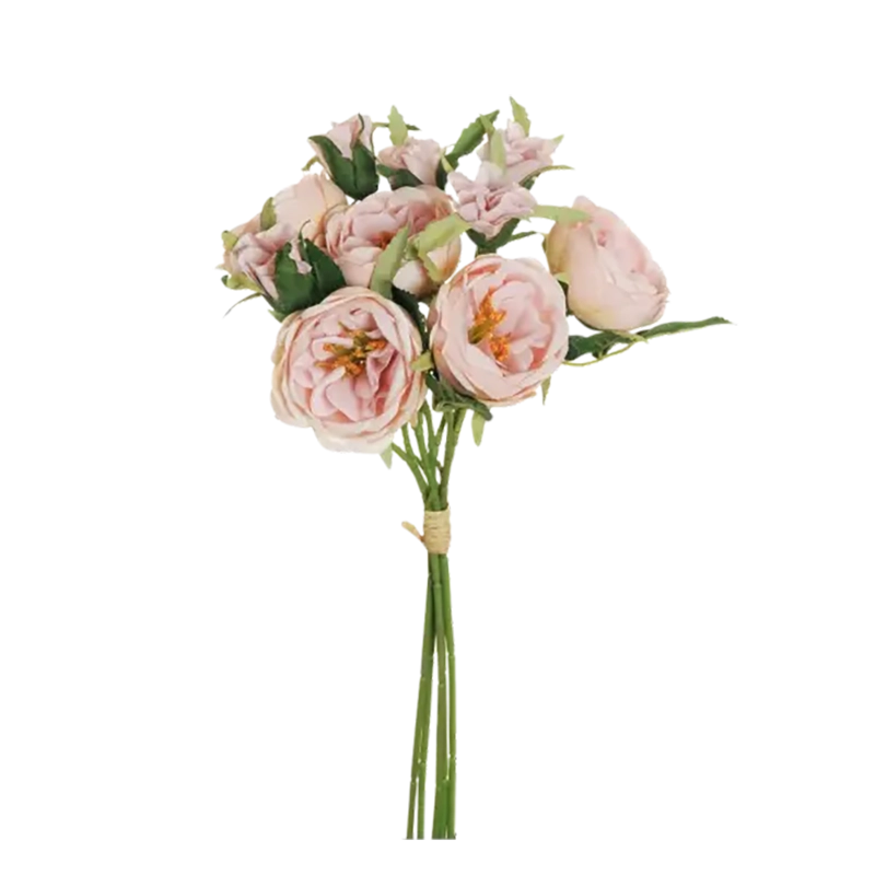 Mini šopek vrtnic z zelenjem, visoki 30 cm, v mešanih barvah, je idealen za dekoracijo notranjih prostorov. Izdelan iz kakovostne plastike, združuje naraven videz z enostavnim vzdrževanjem.