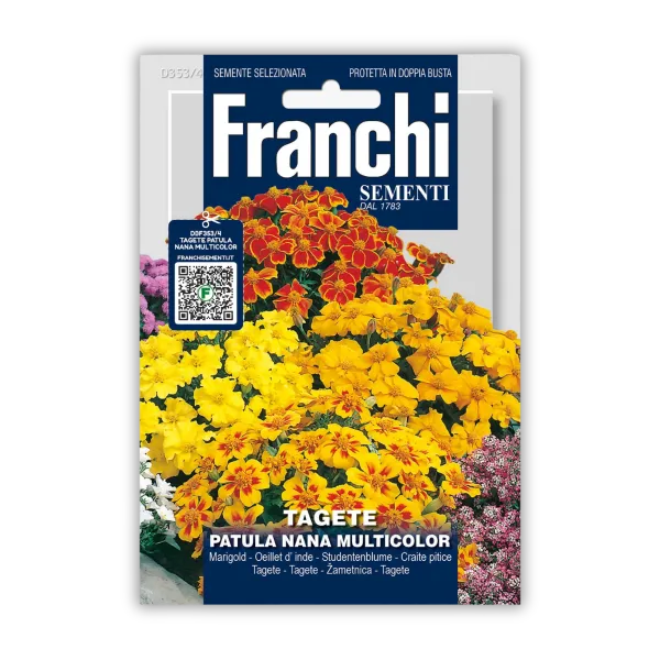 Vrtni ognjič Doppia Fiesta, enoletnica visoka približno 40 cm, z bujnim cvetenjem v rumenih in oranžnih tonih. Idealna za cvetlične grede in rezano cvetje.