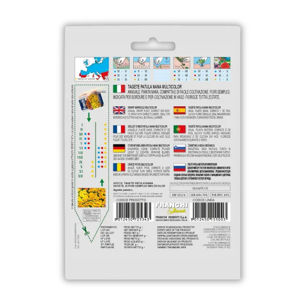 Nizka enoletnica visoka 30 cm, z bujnimi, polnimi rumenimi cvetovi. Idealna za sončne gredice in obrobe.