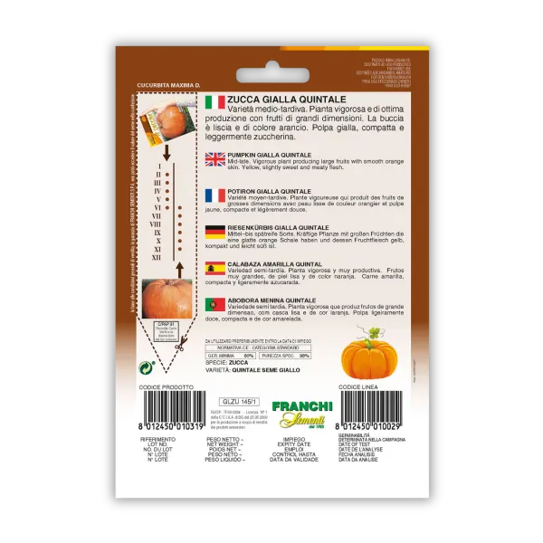 Enoletna okrasna buča Turkish Turban s plodovi značilne oblike turbana. Idealna za okrasne aranžmaje in dolgo obstojna po obiranju.
