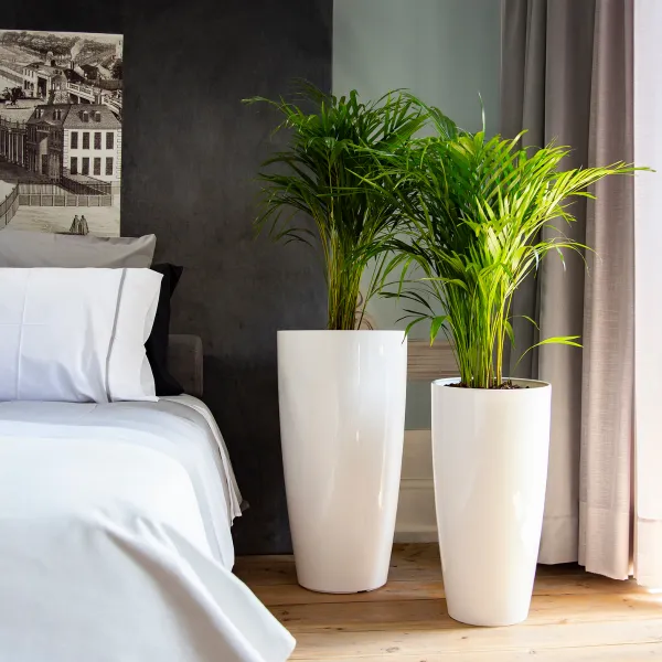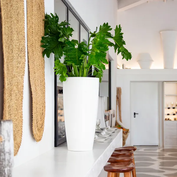 Visok cvetlični lonec Santorini je popolna izbira za sodobno dekoracijo. Z zaobljeno obliko in elegantnim dizajnom je primeren za notranjo in zunanjo uporabo ter zagotavlja trajnost in odpornost.