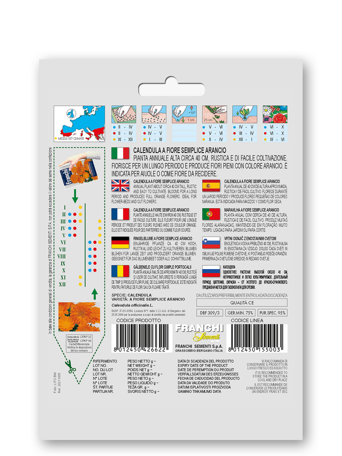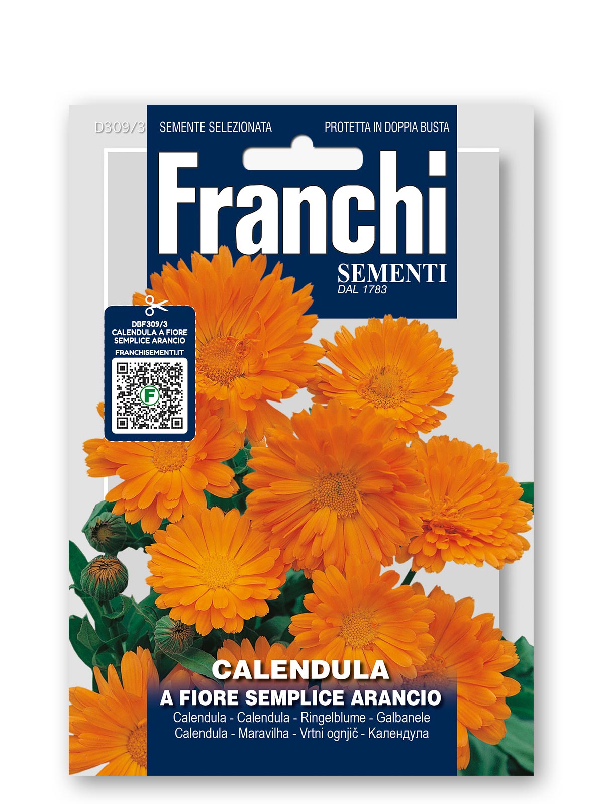 Vrtni ognjič Doppia Fiesta, enoletnica visoka približno 40 cm, z bujnim cvetenjem v rumenih in oranžnih tonih. Idealna za cvetlične grede in rezano cvetje.